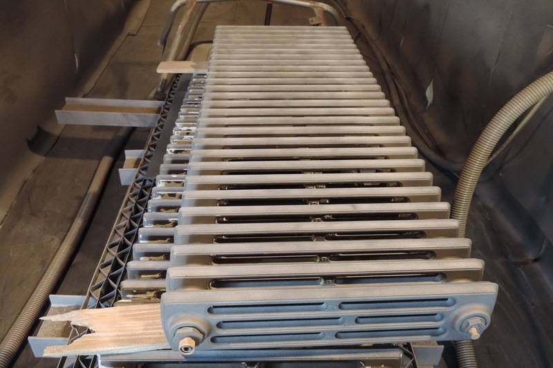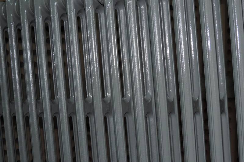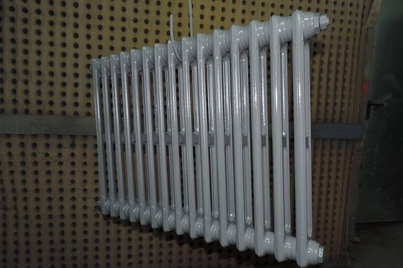 Application de Peinture De Finition Haute Température sur Radiateur Fonte Après Sablage pour enlever les anciennes couches de peinture. PORTANT & Fils Réalise ses travaux dans son atelier de Marignane (13)