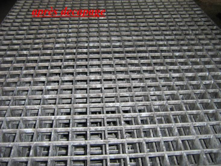 Le sablage des métaux élimine la rouille et leur rend leur aspect d'origine.Décapage de caillebotis de cabine de peinture par immersion ATELIER CITROENE.